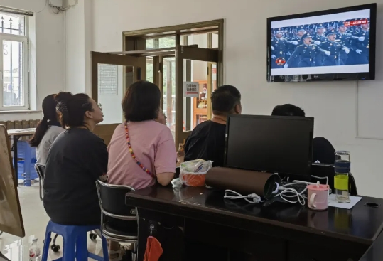 抚顺市望花区光明街道油研社区“侨胞之家”组织收看纪念中国人民抗日战争暨世界反法西斯战争胜利80周年阅兵仪式直播