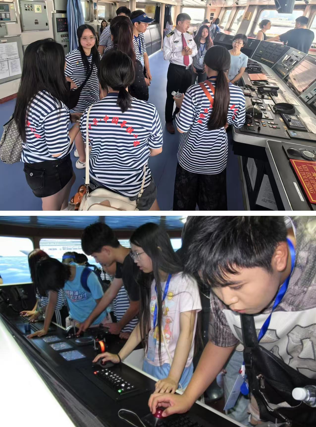 营员们登上大连海事大学教学实习船育鲲轮,参观了驾驶台、机舱、甲板等区域,了解现代航海技术与船舶动力系统,领略了中国海洋强国建设成就,增强了民族自信。