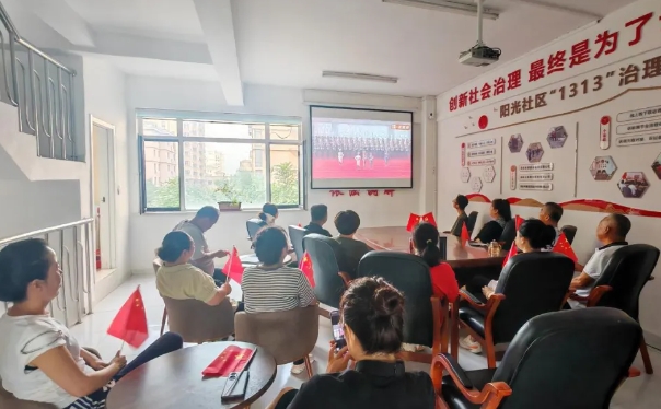 沈阳市沈河区五里河街道金生社区组织收看纪念中国人民抗日战争暨世界反法西斯战争胜利80周年阅兵仪式直播
